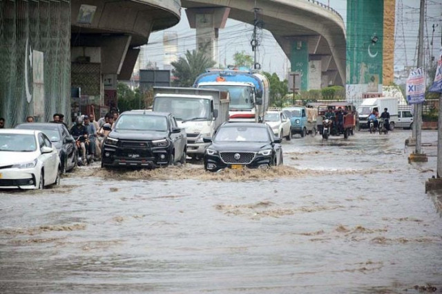Karachi was whipped by heavy downpours when the second wave of monsoon rains reached the city, with the city of Armjani receiving the highest rain at 129.8 mm in the last 24 hours.
