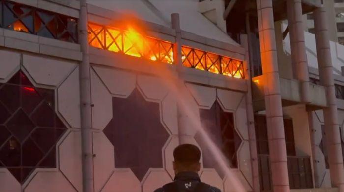 Humayun Khan Fire Director, speaking with Geographical newsHe said the fire had begun on the roof of the building and extended to the fourth and third floors, which house clothing stores.