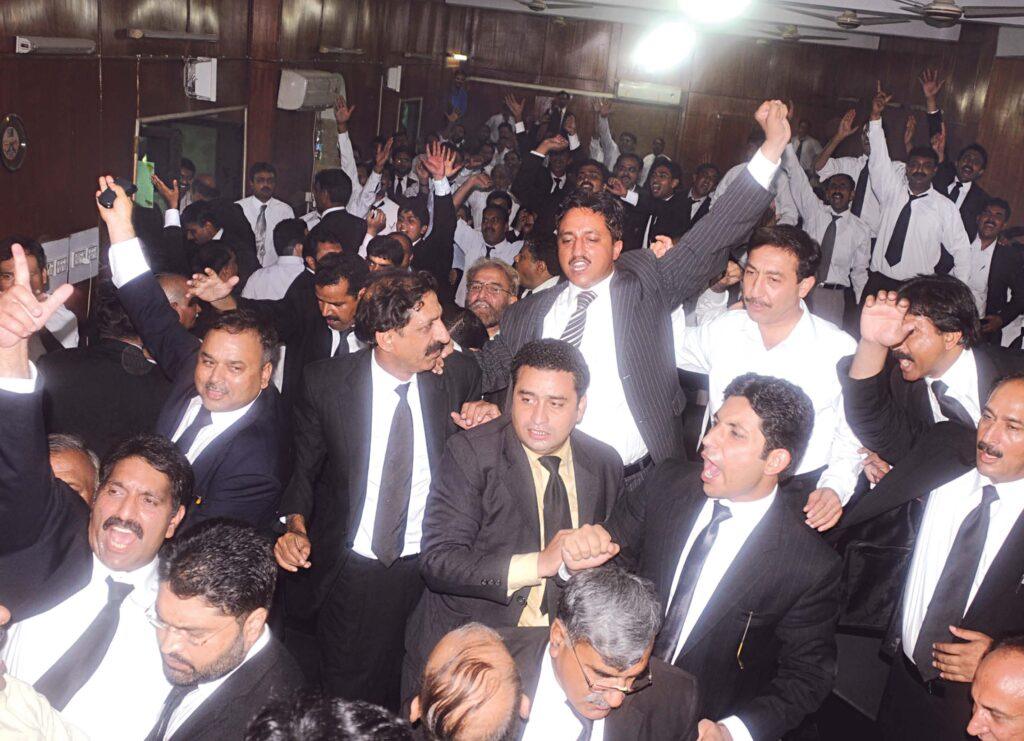 The district lawyers association observed a full strike on Monday, boycotting judicial procedures in protest against the alleged assault, abuse and false FIR against former Bar Malik Tajammul Awan and main lawyer and the main lawyer Chaudhry Rizwan Elahi for Transit Police staff.