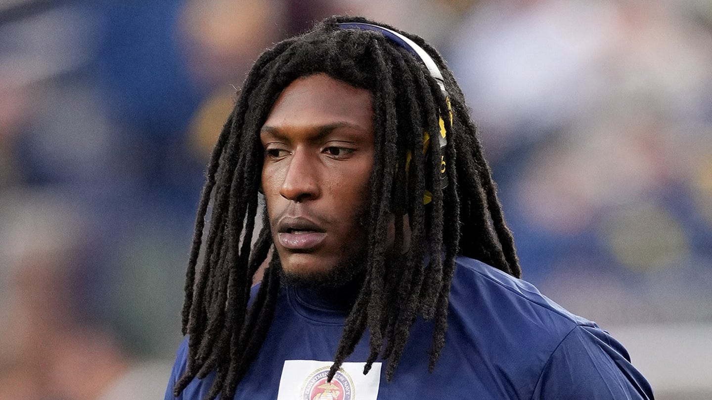 Jaishawn Barham (1) of the Michigan Wolverines on the field before a game against the Purdue Boilermakers at Michigan Stadium in Ann Arbor, Michigan, on Nov. 1, 2025. (Raj Mehta/Getty Images)