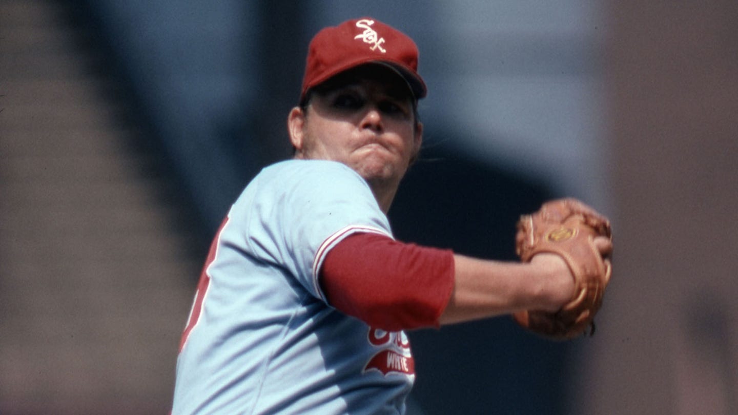 Chicago White Sox pitcher Wilbur Wood (8) throws a pitch at Comiskey Park during the 1973 season. (Malcolm Emmons/USA TODAY Sports)
