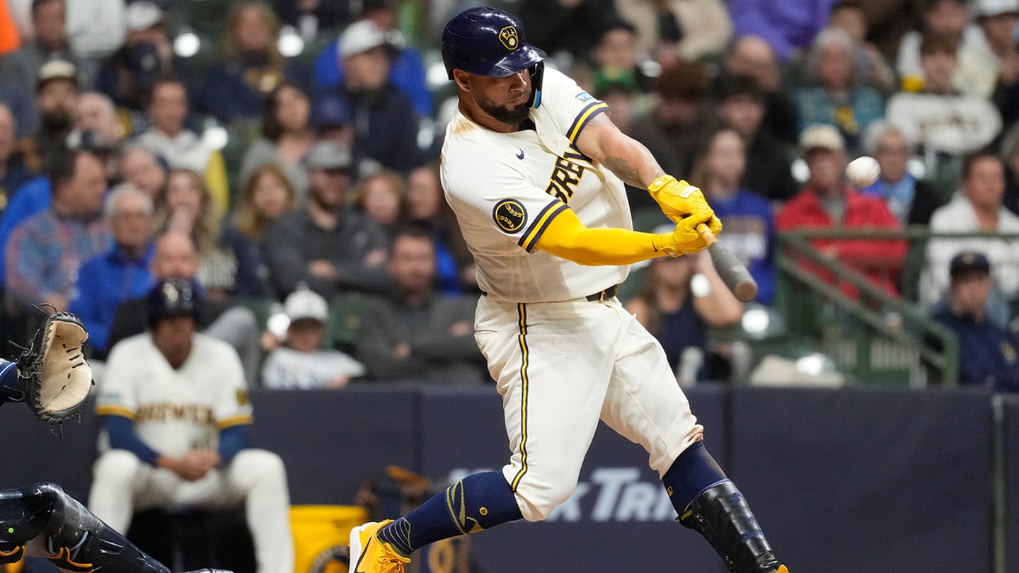 Milwaukee Brewers’ Gary Sanchez hits a solo home run during the sixth inning of a baseball game against the Tampa Bay Rays, Tuesday, March 31, 2026, in Milwaukee. (AP Photo/Aaron Gash)
