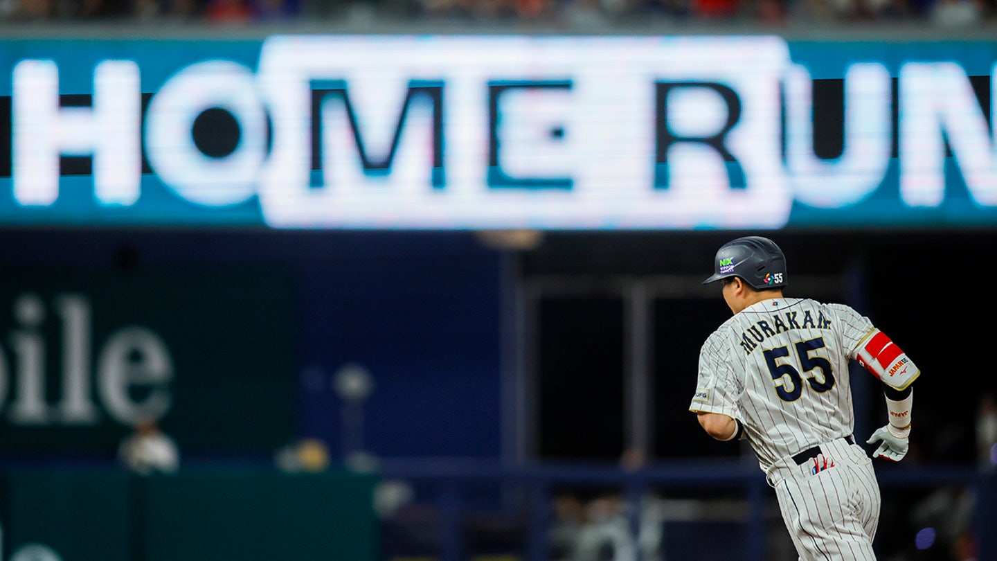 Japanese third baseman Munetaka Murakami rounds the bases after hitting a home run against the United States at LoanDepot Park on March 21, 2023. (Sam Navarro/USA Today Sports)