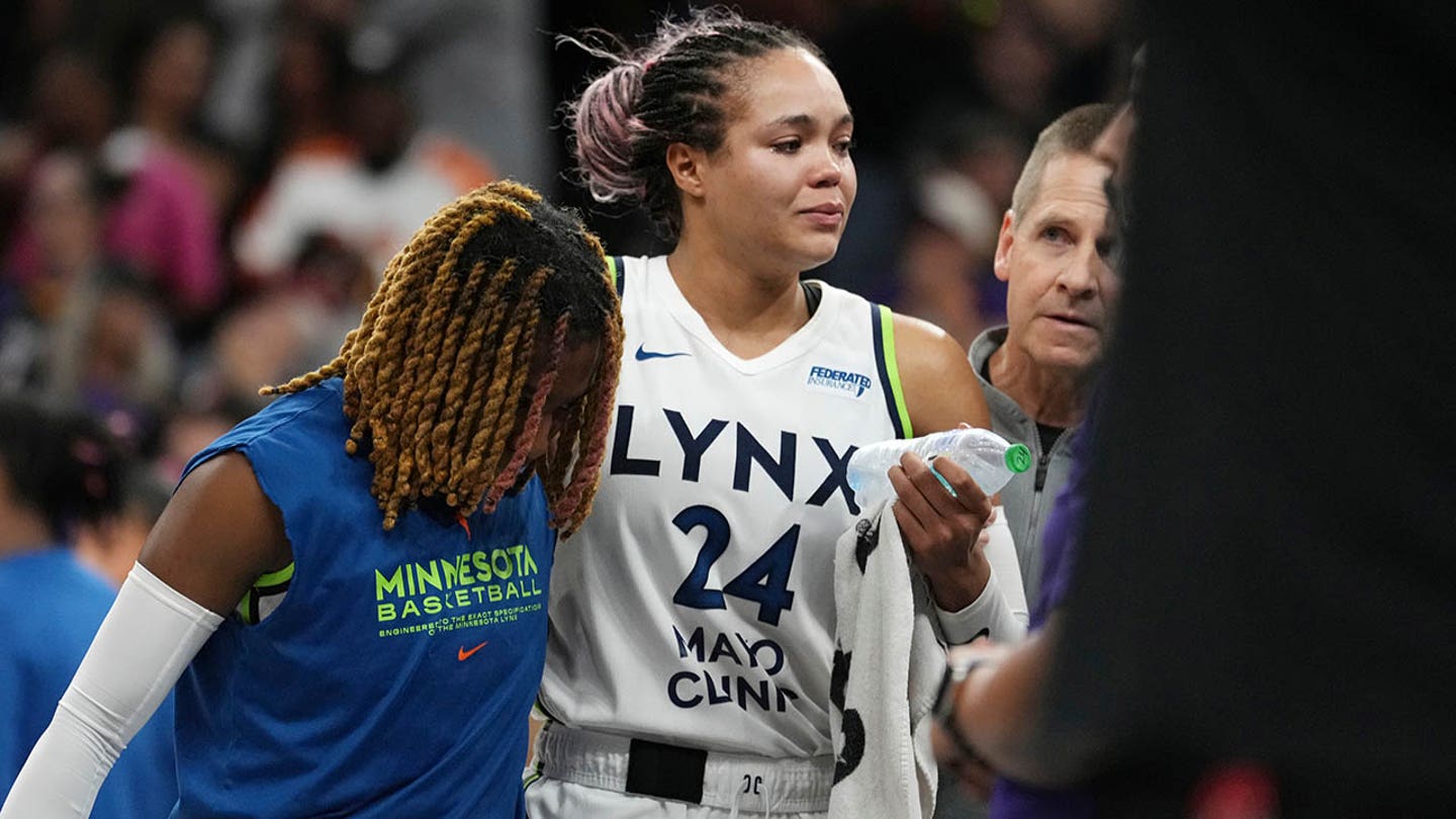 Napheesa Collier was injured during game 3 of the playoff game of the WNBA of Minnesota Lynx against Phoenix Mercury. (Jordan Johnson/NBAE through Getty Images)