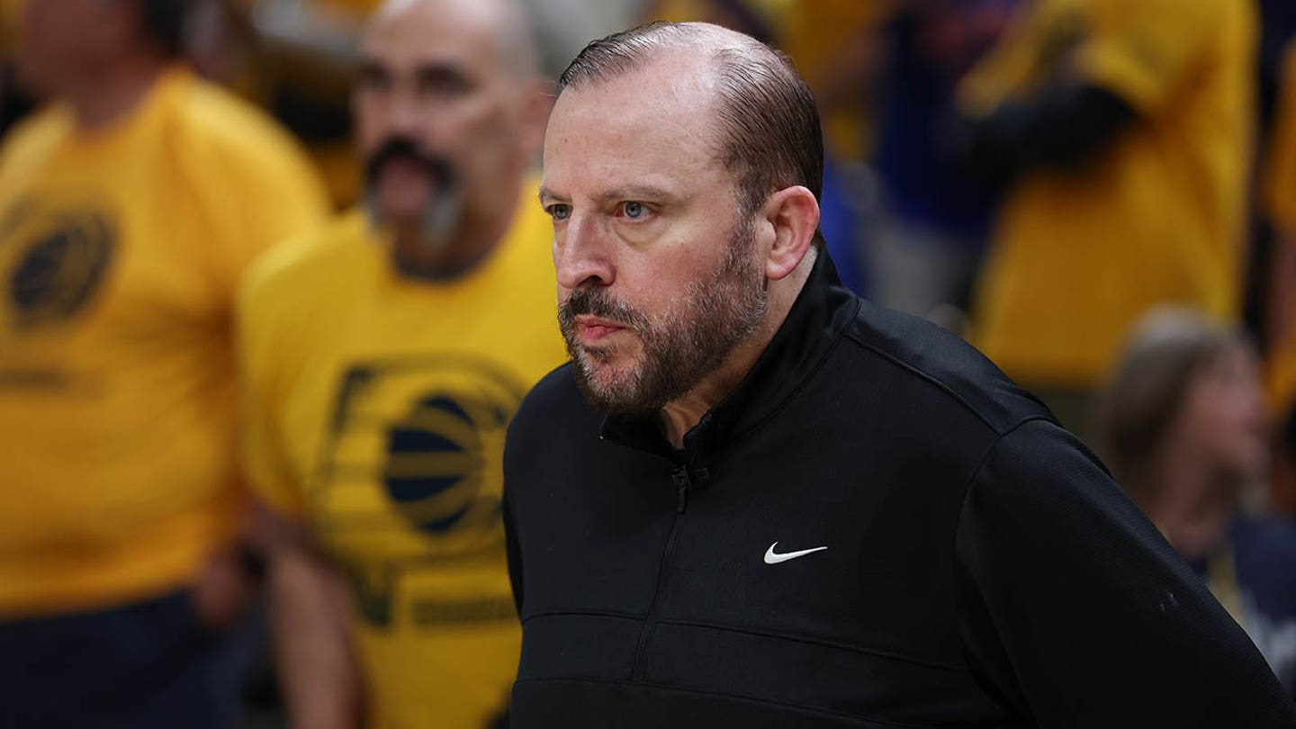 The New York Knicks chief coach Tom Thibodeau, observes six of the East Conference against the Indiana Pacers for the NBA playoffs of 2025 in Gainbridge Fieldhouse in Indianapolis on May 31, 2025. (Images of Trevor Ruszkowski-Imagn)