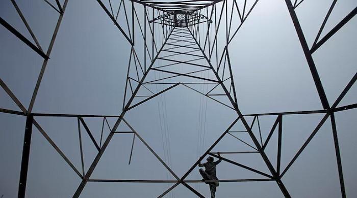 A Peshawar Electric Supply Company (PESCO) worker climbs a high-voltage pylon in Peshawar, Pakistan, August 7, 2017. – Reuters