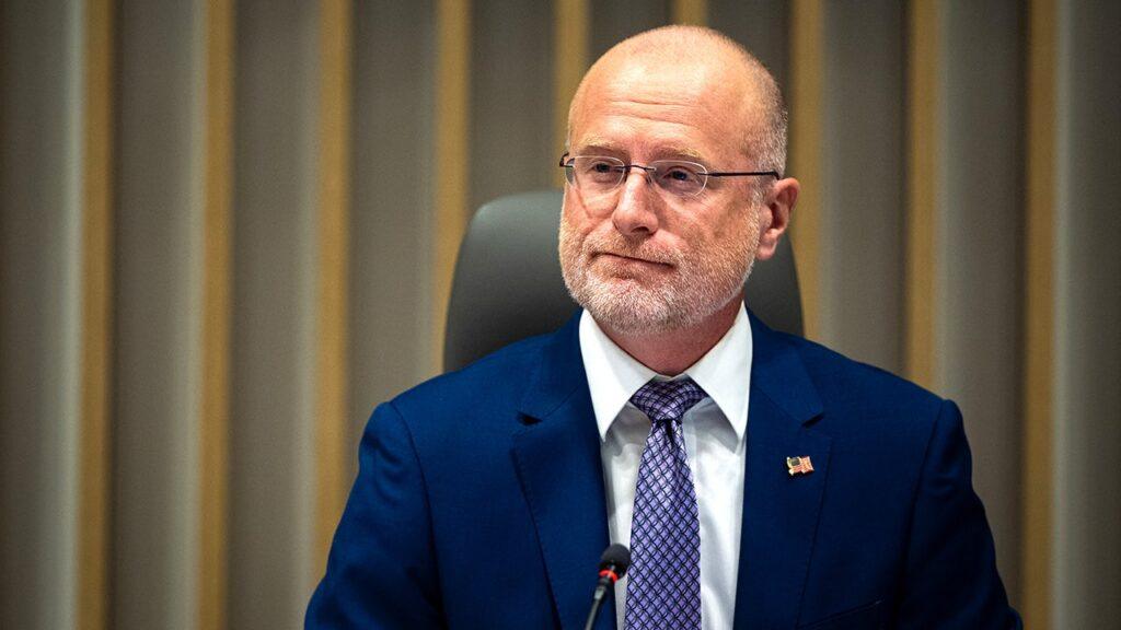 Federal Communications Commission (FCC) Chairman Brendan Carr speaks at a press conference following an FCC meeting in Washington, DC, on February 18, 2026. (Kevin Dietsch/Getty Images)