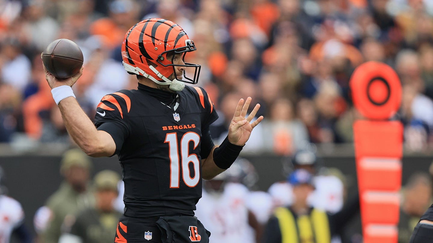 Cincinnati Bengals quarterback Joe Flacco (16) throws a pass against the Chicago Bears during the second quarter at Paycor Stadium on Nov. 2, 2025. (Katie Stratman/Image Images)