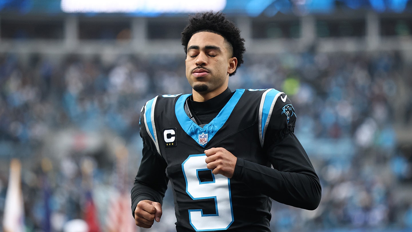Bryce Young of the Carolina Panthers is seen before playing against the Seattle Seahawks at Bank of America Stadium on December 28, 2025 in Charlotte, North Carolina. (Jared C. Tilton/Getty Images)
