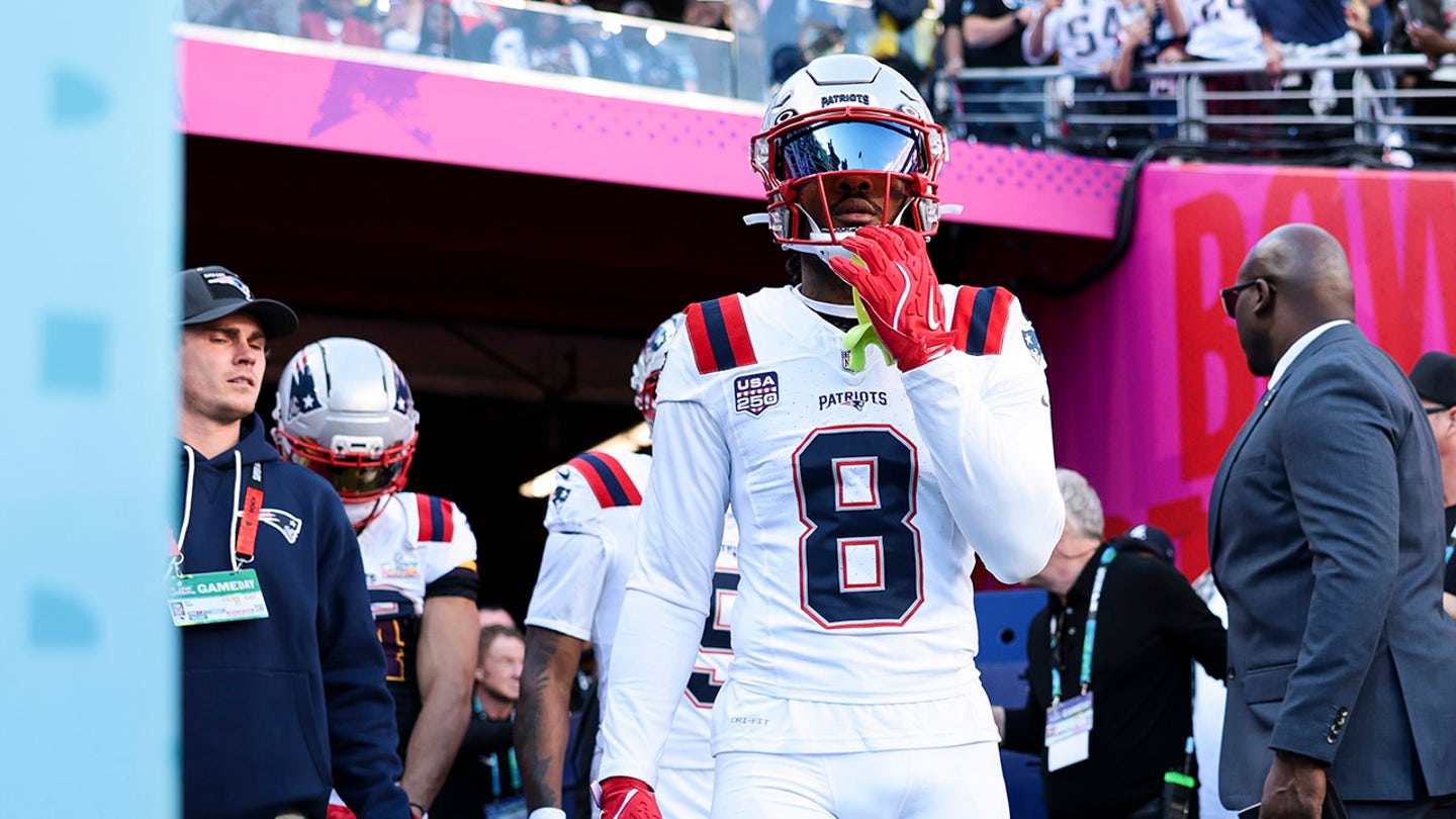 Stefon Diggs of the New England Patriots runs on the field before Super Bowl LX against the Seattle Seahawks at Levi’s Stadium on February 8, 2026, in Santa Clara, California. (Kathryn Riley/Getty Images)