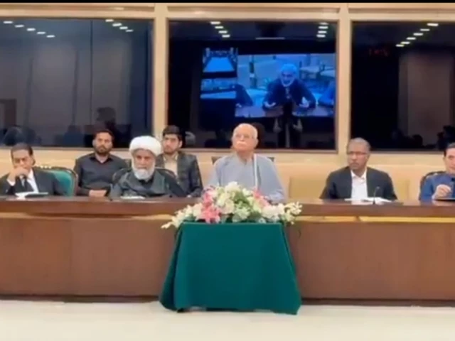 Leader of Opposition in the National Assembly Mehmood Khan Achakzai and Leader of Opposition in the Senate Allama Nasir Abbas chair the joint parliamentary meeting of the opposition alliance in Islamabad on Wednesday. SCREEN CAPTURE