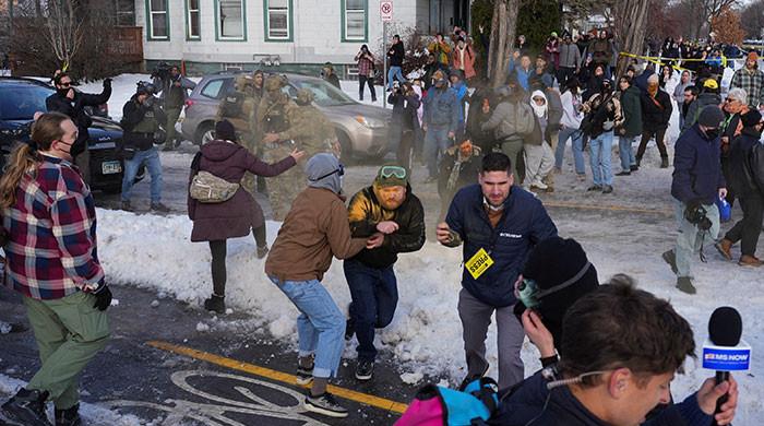 A video of the incident, which has not been verified by AFP, shows a Honda SUV apparently blocking unidentified police vehicles trying to navigate a snow-covered street.