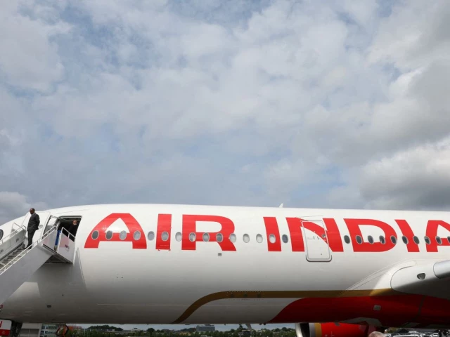 Air India branding is seen on an Airbus A350-900 at the Farnborough International Airshow in Farnborough, Britain, July 24, 2024. PHOTO: REUTERS