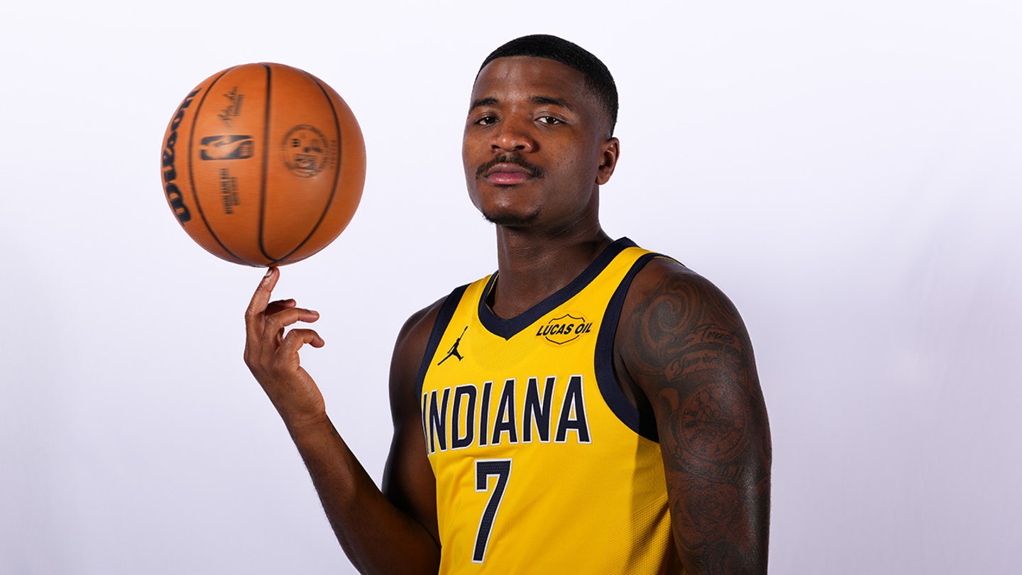 Kam Jones of the Indiana Pacers poses for photos during Media Day at Gainbridge Fieldhouse on September 29, 2025 in Indianapolis, Indiana. (Dylan Buell/Getty Images)