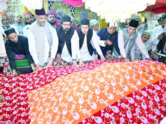 First Secretary of Pakistan High Commission in New Delhi Shoaib Sarwar and other diplomats on Friday laid the traditional chaddar at the shrine of Hazrat Khwaja Nizamuddin Auliya (RA), whose 722nd urs is being celebrated these days.
