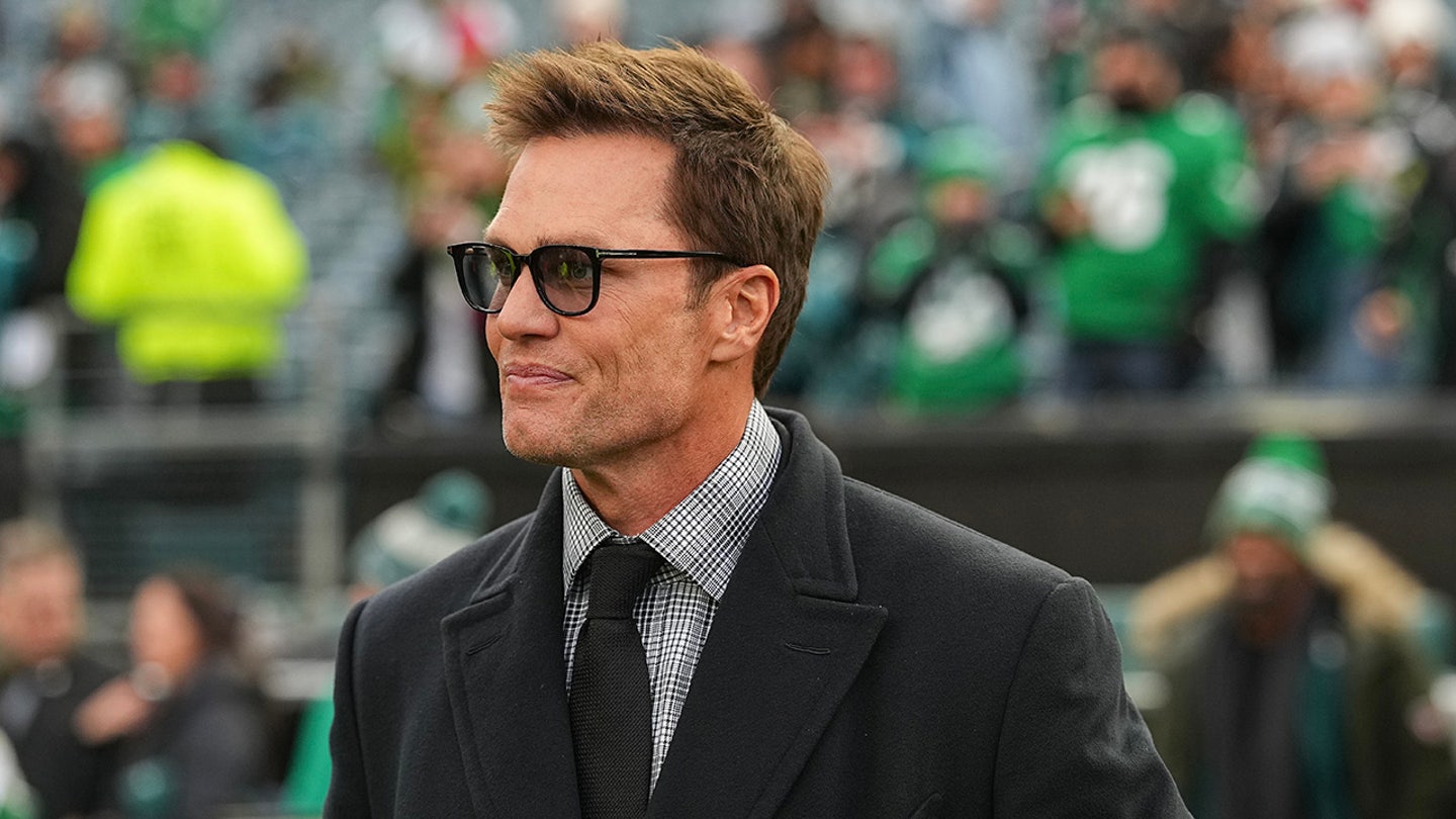 Tom Brady watches before the NFC Wild Card playoff game between the Philadelphia Eagles and the San Francisco 49ers at Lincoln Financial Field on January 11, 2026 in Philadelphia, Pennsylvania. (Mitchell Leff/Getty Images)