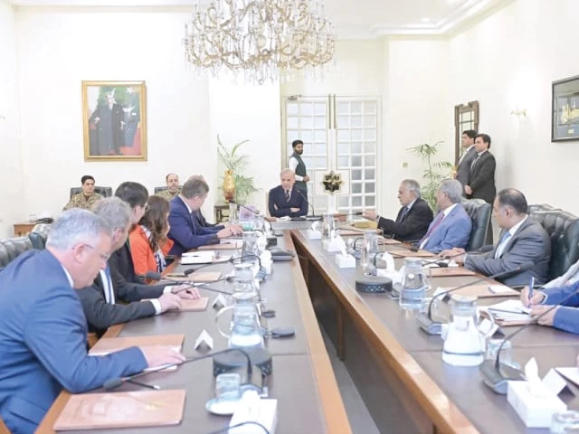 A business delegation from the European Union visits Prime Minister Shehbaz Sharif in Islamabad. PHOTO: APP