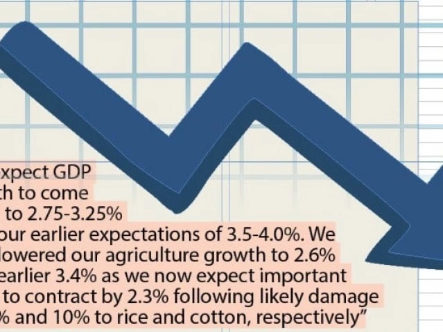 Higher line projects so that agricultural growth has been cut to 2.6%of 3.4%, and key crops are expected to enter 2.3%. “Now we expect 15% and 10% damage to rice and cotton, respectively,” the report said.