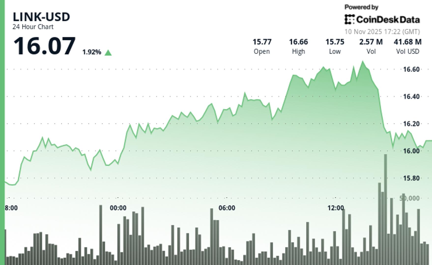 Chainlink native token LINK rebounded on Monday, advancing 5.2% over the 24-hour period to a session high of $16.66 before profit-taking occurred.