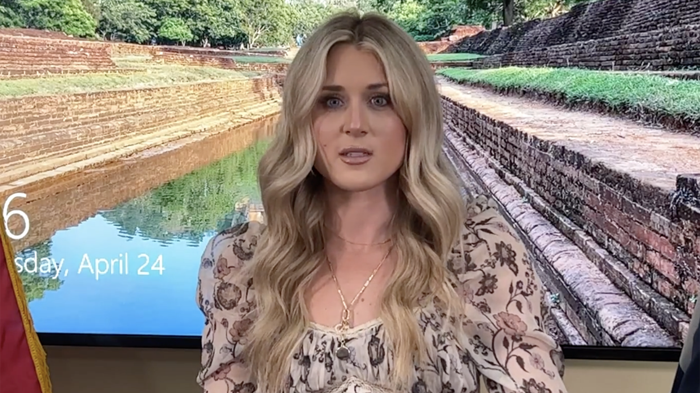 Riley Gaines speaks at a press conference with West Virginia Ag Patrick Morrisey. (Sceenshot)