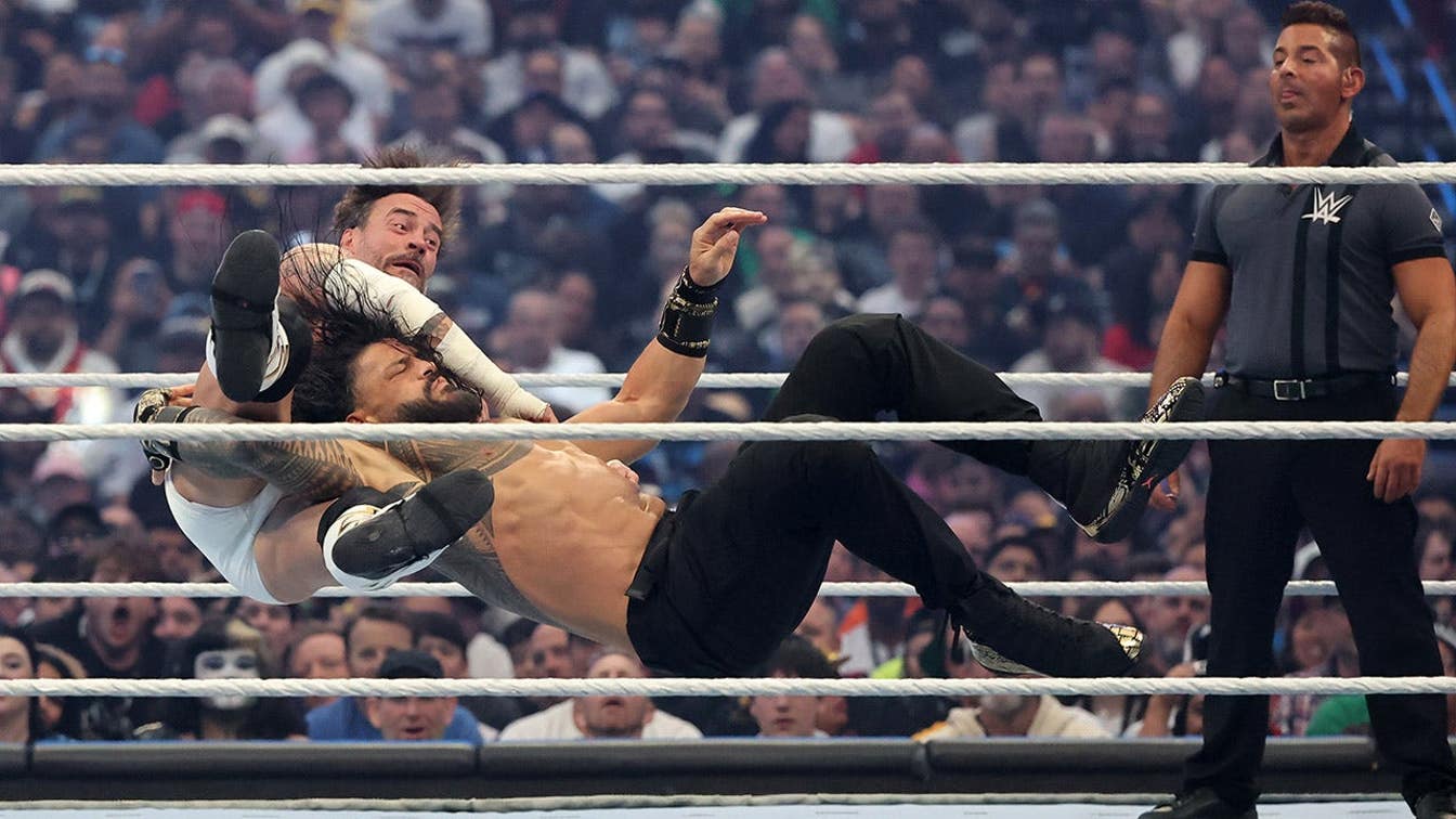 A Samoan fall set the stage for Reigns to go on the offensive first. The crowd recognized their “Tribal Chief” as he pinned Punk outside the ring.