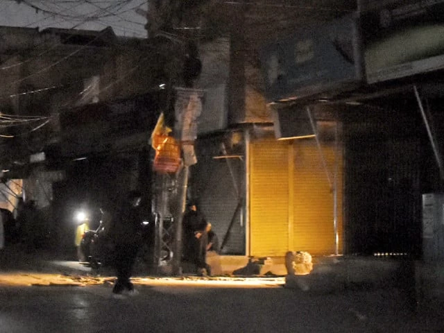 A market in Rawalpindi is plunged into darkness due to load shedding amid increased demand for electricity following a steady rise in mercury. PHOTO: ONLINE