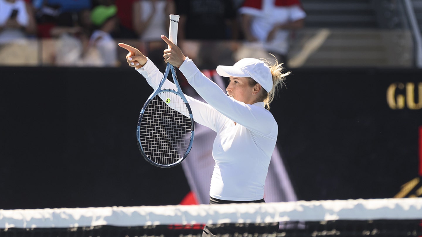 Yulia Putintseva reacts after winning her match against Zeynep Sonmez and advancing to the fourth round of the Australian Open at Melbourne Park in Melbourne, Australia, on January 23, 2026. (Mark Avellino/Anadolu via Getty Images)