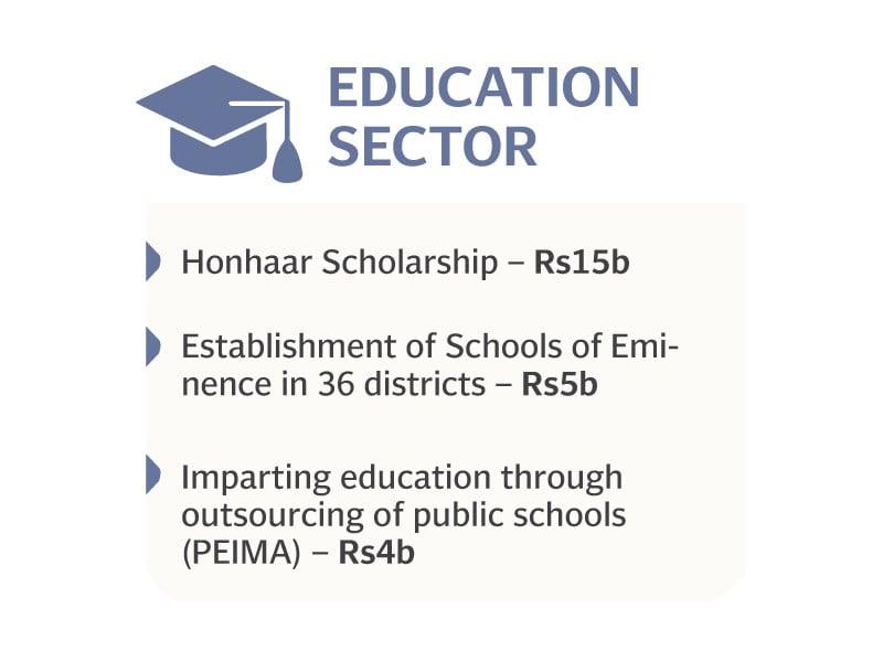 The budget includes allocations for the laptop scheme and the Honhar scholarship program, in addition to the provision of facilities and the construction of shelters, libraries and computer laboratories.