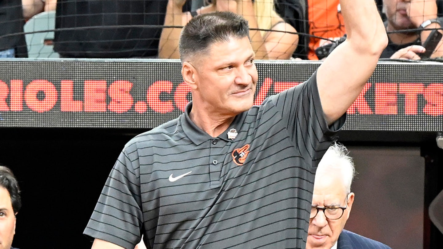 Ben McDonald is presented to the crowd during the 30th anniversary of Cal Ripken Jr. 2131 before a game between the Los Angeles Dodgers and the Baltimore Orioles in Oriole Park on September 5, 2025 in Baltimore, Maryland. (Diamond images through Getty Images)