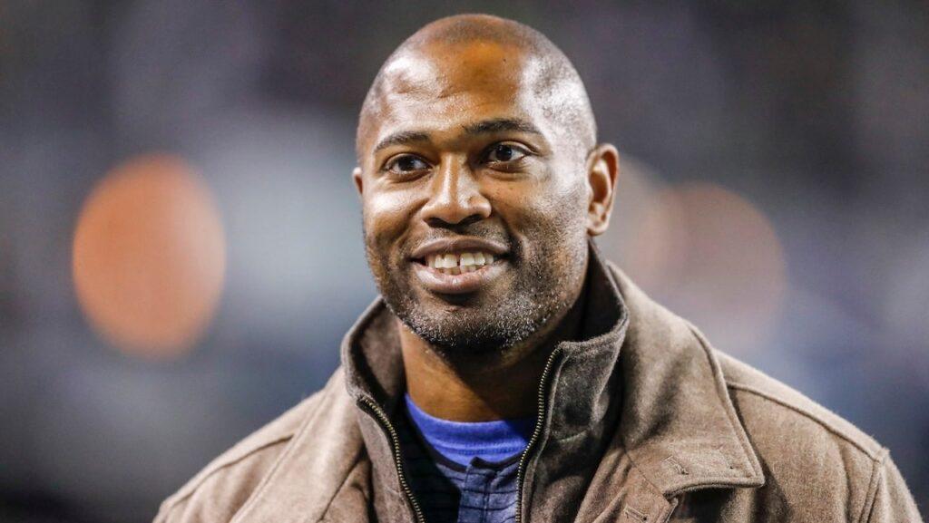 Shaun Alexander appears on the red carpet before the presentation of the NFL honors awards at the YouTube theater on February 10, 2022. (Kirby Lee/USA Today Sports)