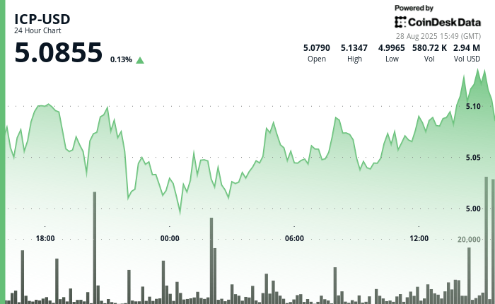 Internet computer protocol (ICP) Resilience demonstrated during the last 24 hours, organizing a rally that raised the token almost 3% to $ 5.13.