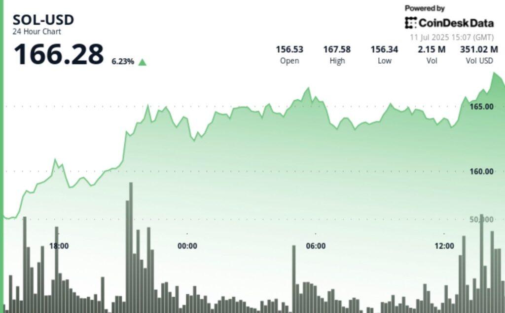 - Sol demonstrated exceptional resistance during the previous period of 24 hours from July 10 from 3:00 p.m. to 11, 14:00, progressing from $ 156.45 to $ 166.65, constituting a substantial appreciation of 6.52% with an added negotiation range of $ 10.99 that extends from $ 155.78 to $ 166.76.