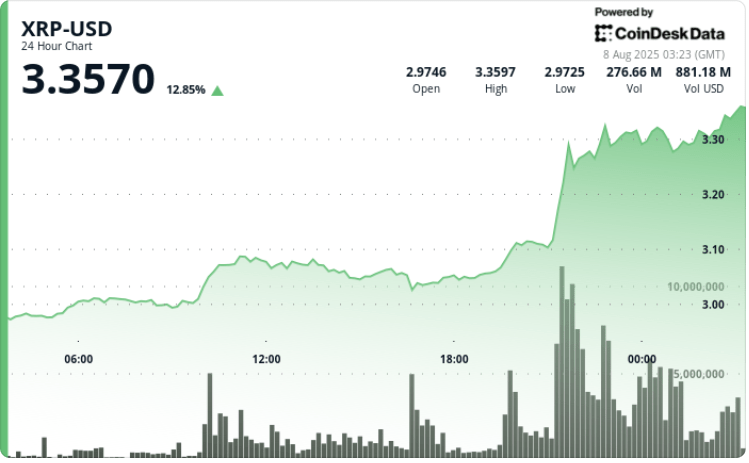 XRP explodes 11% higher in the 24 -hour period ending on August 8, firing from $ 2.99 to $ 3.30 in a scorching rally.