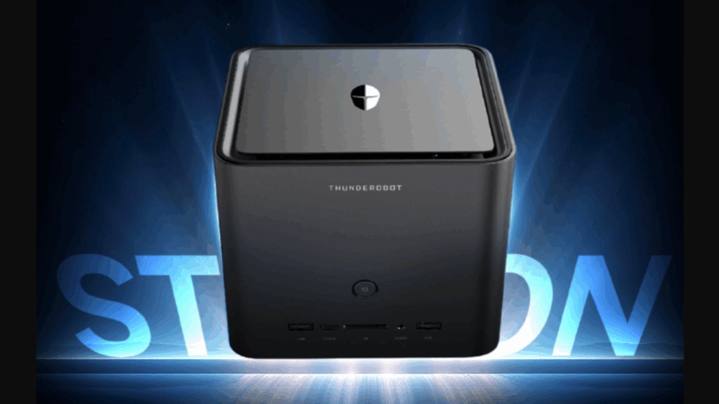 The device, known as the Thunderobot Station, takes the form of a compact, cube-shaped desktop computer rather than a traditional tower or laptop format.