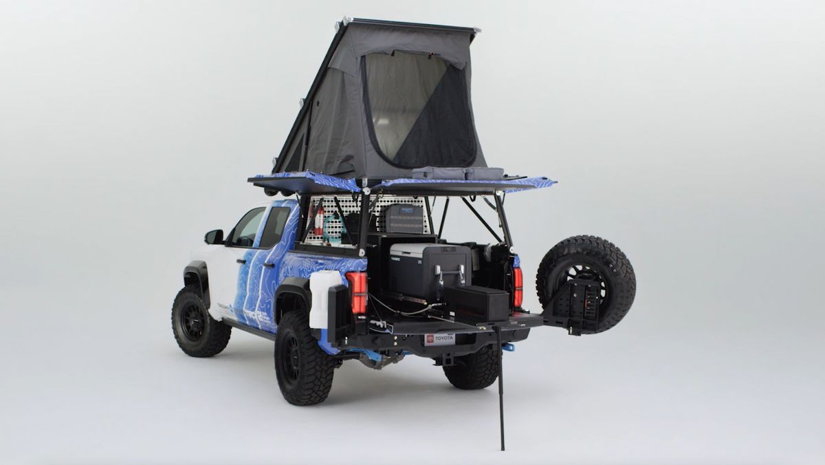 What’s more, the Tacoma H2-Overlander also features powerful 15kW power “take-off” capabilities, which is similar to a beefed-up version of the Vehicle-to-X technology found in some modern electric vehicles, allowing them to power camping gadgets and whatnot.