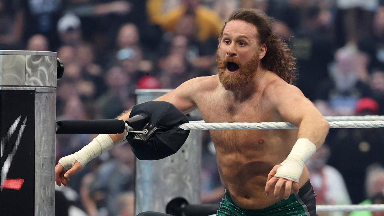 Sami Zayn reacts during the United States Championship match against Trick Williams at WrestleMania 42 at Allegiant Stadium in Las Vegas, Nevada on April 19, 2026. (Ethan Miller/Getty Images)