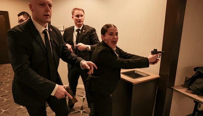 A cabinet official, Mehmet Oz, said “shots were fired upstairs” as security officers ran him away.