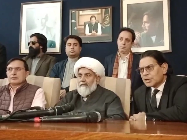 PTI General Secretary Salman Akram Raja addresses a press conference in Islamabad on Wednesday, flanked by Tehreek-e-Tahafuz-e-Ayin-e-Pakistan Vice President, Senator Allama Raja Nasir Abbas and PTI Chairman Barrister Gohar. SCREEN CAPTURE