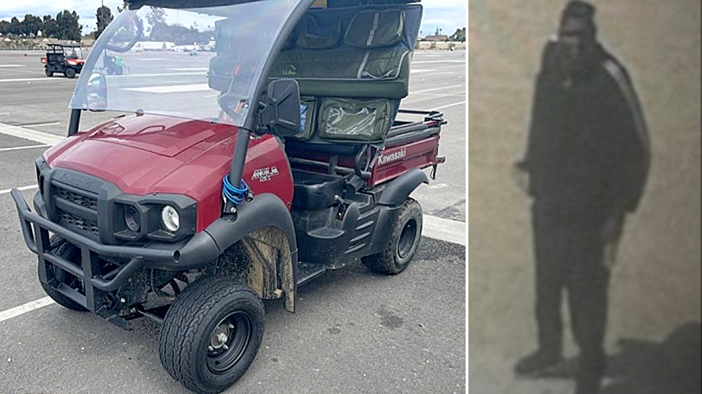 According to the Inglewood Police, around 2:22 pm, a suspect left with a UTV of Mula Kawasaki of the Lake Land area of the NFL stadium. In the utilitarian vehicle there were two hawks in green containers. (Inglewood Police Department)