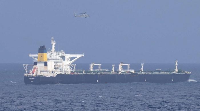 A US military helicopter flies over the Panama-flagged Centuries, which was intercepted by the US Coast Guard, days after US President Donald Trump announced a “blockade” of all sanctioned oil tankers entering and leaving Venezuela, east of Barbados in the Caribbean Sea, on December 20, 2025. — Reuters