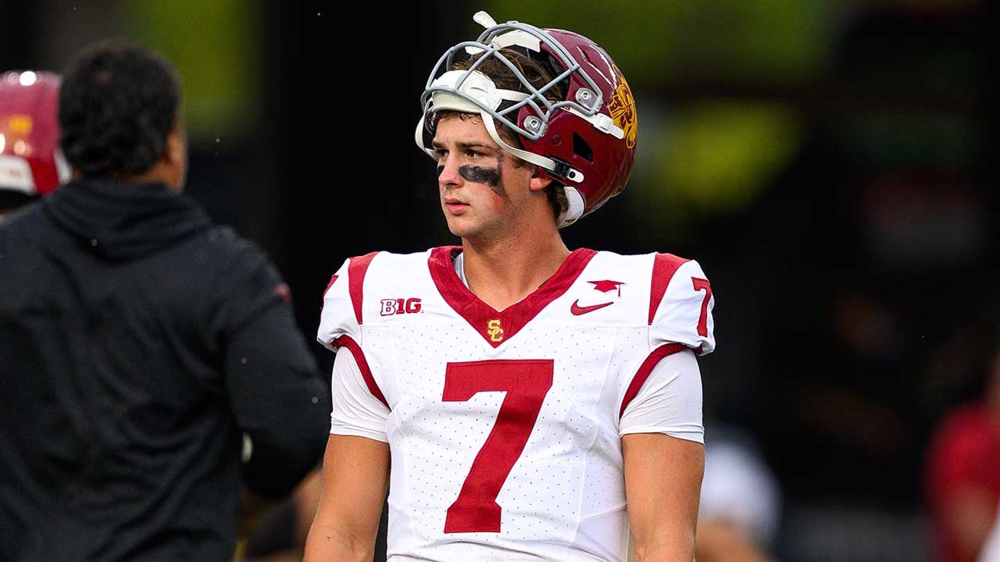 Southern California Trojans quarterback Sam Huard (7) warms up before a college football game between the Purdue Boilermakers and the Southern California Trojans at Ross-Ade Stadium in West Lafayette, Indiana, on Sept. 13, 2025. (Zach Bolinger/Icon Sportswire via Getty Images)