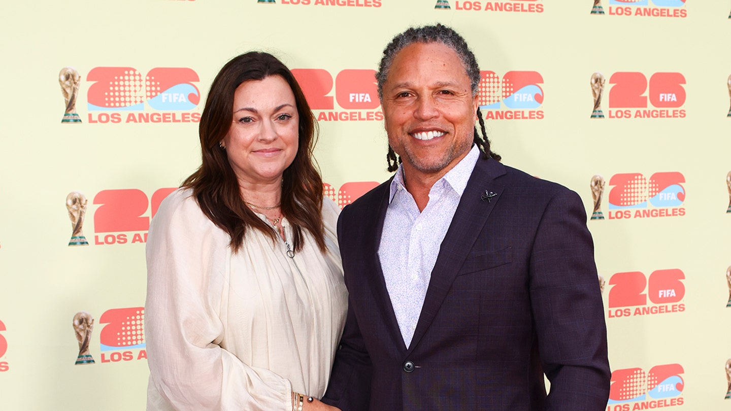 The former professional football player and commentator Cobi Jones and his wife Kim Reese Pose for a photo on the red carpet during the year for the FIFA World Cup 26 event in Fox Studio Lot on June 11, 2025 in Los Angeles. (Jessica Alcheh/Imagn images)