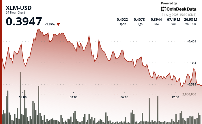XLM negotiated in a narrow band between $ 0.39 and $ 0.41 in a 24 -hour stretch that ends on August 21, reflecting a consolidation phase before a possible movement. The vendors repeatedly crowned upwards at $ 0.41, while the buyers defended the support of $ 0.40, maintaining the volatility submitted. A gradual fall in volume suggested that merchants were positioning for an attempt to break.