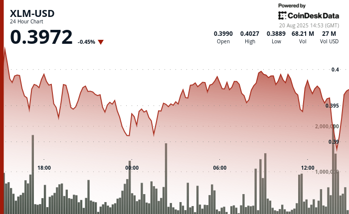 XLM slipped to a bassista dressed in the last 24 hours, quoting between $ 0.39 and $ 0.40 and breaking the key support levels. Token volatility intensified during the last negotiation hours of August 20, when prices fell from $ 0.40 to $ 0.39, marking a decisive support violation that had previously provided a purchase impulse. The movement indicates the continued pressure on the asset despite its attempts to consolidate around the threshold of $ 0.40.